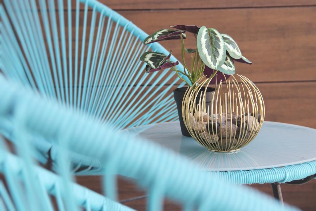Guests can make meals in the kitchen that features a stovetop, a refrigerator, kitchenware and an electric kettle. The air-conditioned apartment features a TV, a washing machine, a private entrance, a wardrobe as well as sea views. The unit has 1 bed.